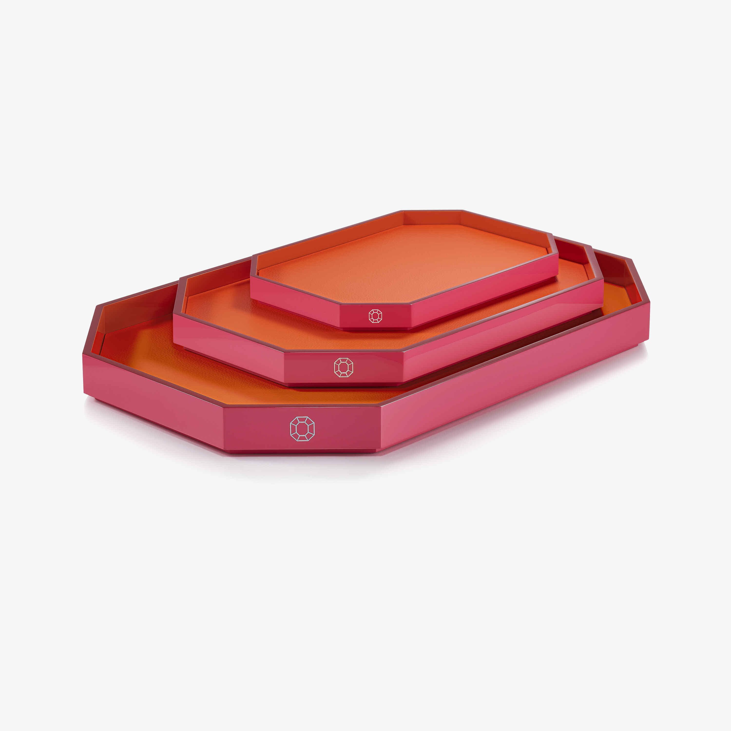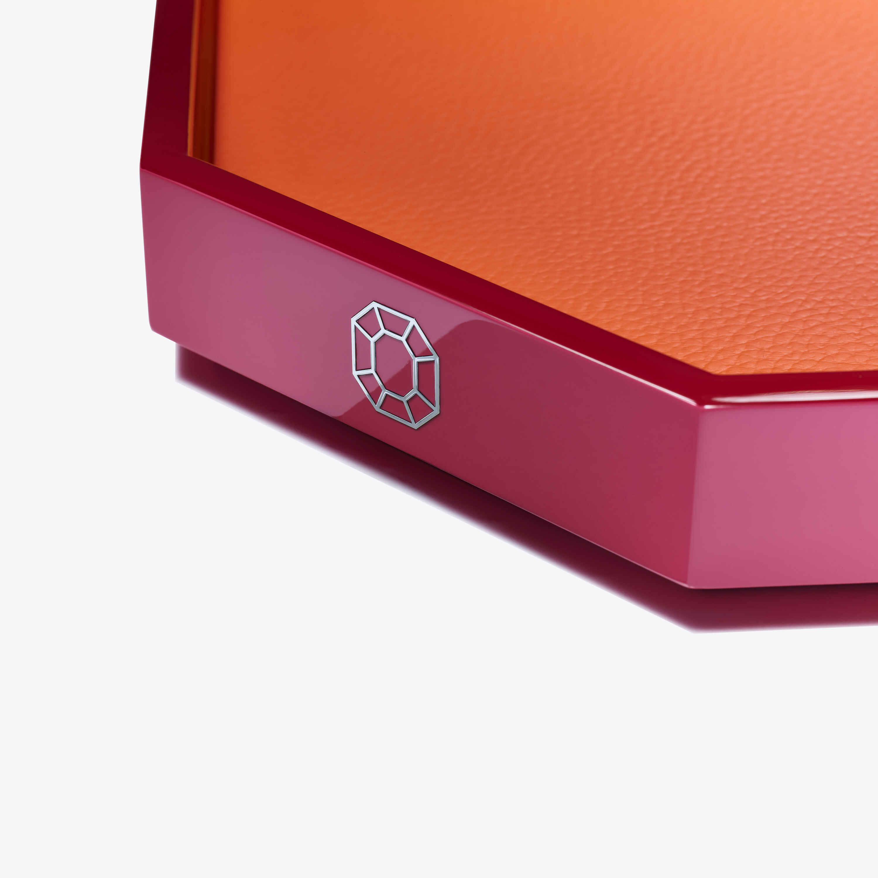 八角形漆面托盘精致美观,可选三种尺寸。受到Baccarat巴卡拉标志性的红色八角形装饰的启发,一系列精致的漆面配饰组成了这些新作品,旨在使八角形系列更加丰富。八角形托盘由传承世代工艺的大师精心手工制作而成,其光彩夺目的表面能捕捉光线,与巴卡拉水晶作品相互辉映。每个托盘都配有可拆卸皮革内衬,通过材质和纹理的对比,散发着优雅的审美情趣。八角形托盘现有多种色调可选,随着季节更替而灵活选择,可与同系列杯垫形成绝妙配搭。