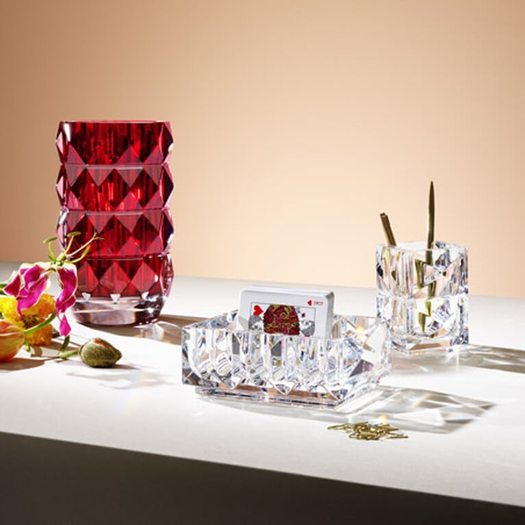 托马斯·巴斯蒂德深谙品牌灵魂,他为巴卡拉设计了1,200多件签名作品,包括众多畅销款:舞动酒杯系列、大洋洲花瓶、螺旋花瓶、深渊系列和2014年的钻石酒杯。作为真正的“光之雕塑家”,他在2010年设计了卢索系列。该系列以强有力的线条和微妙的光线反射为特色,散发出迷人的光芒。卢索现已成为品牌的标志性系列之一,包含水晶杯、水瓶和花瓶等。最近,他将巴卡拉的八角标志转化为具有辉煌反射效果的花瓶。